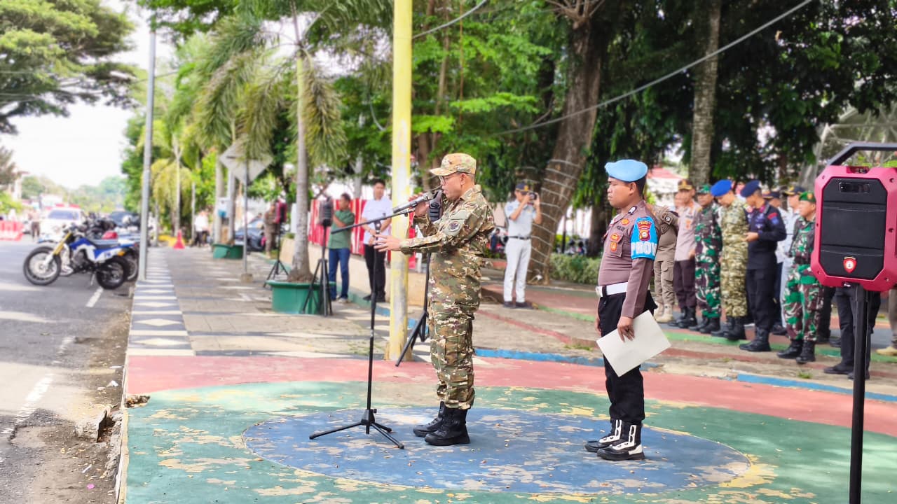 Apel tersebut berlangsung di Jalan MH. Thamrin, tepatnya di depan Kantor Pos, pada Kamis (19 Maret 2026). Kegiatan ini dilaksanakan sebagai bentuk kesiapan serta sinergi lintas instansi dalam menjaga keamanan dan ketertiban masyarakat selama malam takbiran.