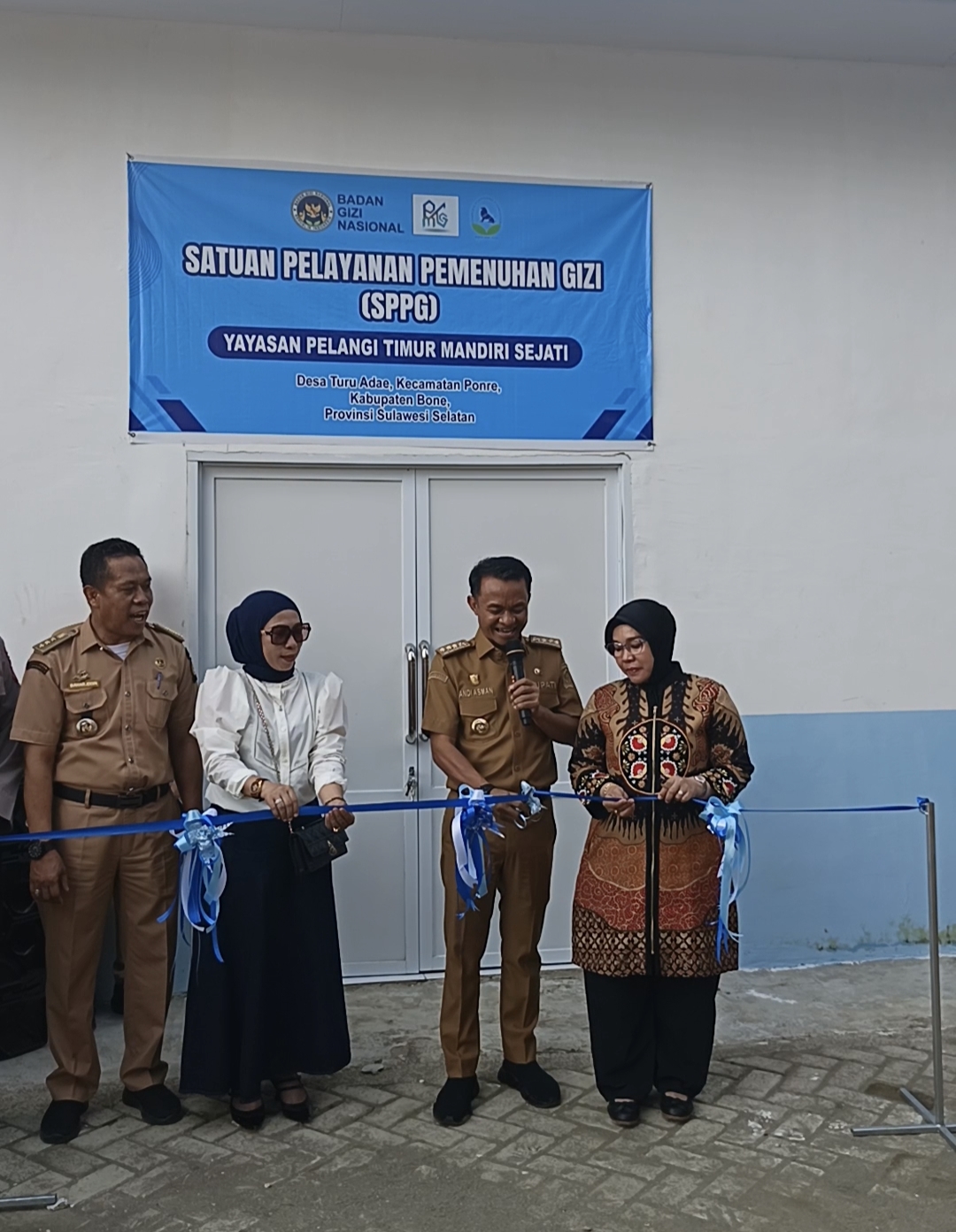 HumasBone – Bupati Bone H. Andi Asman Sulaiman, S. Sos., MM meresmikan Satuan Pelayanan Pemenuhan Gizi (SPPG) di tiga kecamatan, yakni Kecamatan Lappariaja, Kecamatan Ponre, dan Kecamatan Libureng pada Selasa, 31 Maret 2026. Peresmian ini turut didampingi oleh Ketua TP PKK Kabupaten Bone Hj. Maryam Andi Asman.