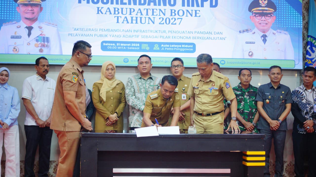 HumasBone – Bupati Bone, Andi Asman Sulaiman, S.Sos., M.M., secara resmi membuka Musyawarah Perencanaan Pembangunan (Musrenbang) Rencana Kerja Pemerintah Daerah (RKPD) Kabupaten Bone Tahun 2027 yang berlangsung di Rumah Jabatan Bupati Bone, Selasa, 31 Maret 2026.