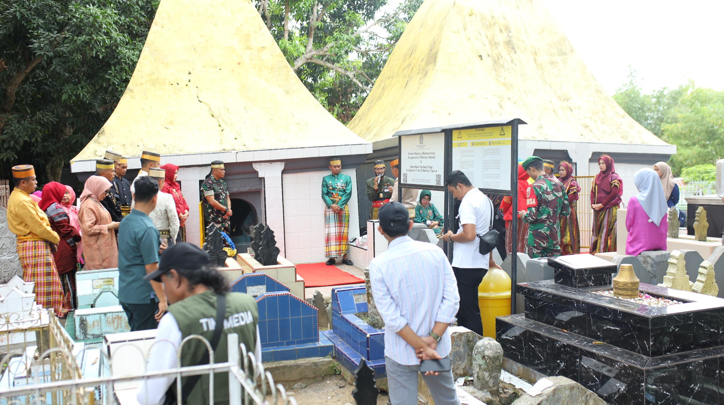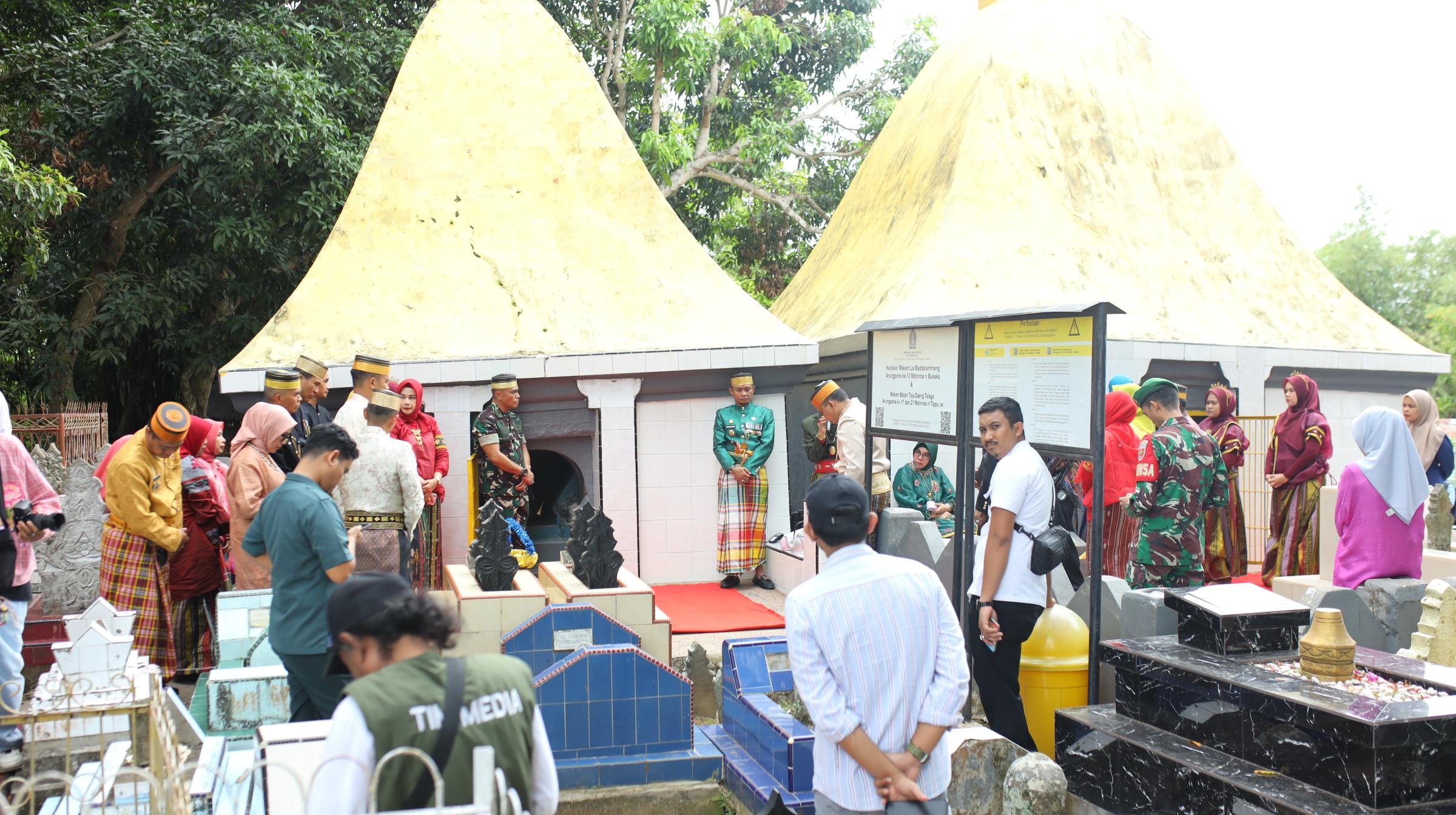 Kegiatan ini dipimpin langsung oleh Bupati Bone bersama jajaran pemerintah daerah, tokoh masyarakat, serta unsur Forkopimda. Prosesi berlangsung khidmat dengan diawali doa bersama, kemudian dilanjutkan dengan tabur bunga sebagai bentuk penghormatan kepada para raja dan tokoh terdahulu.