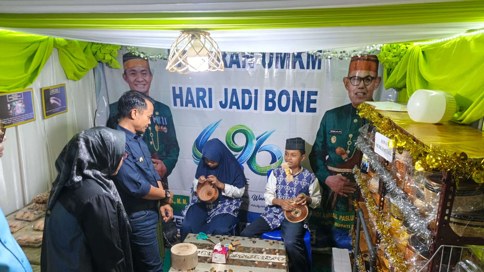 HumasBone – Bupati Bone H. Andi Asman Sulaiman, S.Sos., M.M., didampingi Ketua TP PKK Bone Hj. Maryam Andi Asman bersama Wakil Bupati Bone Dr. H. Andi Akmal Pasluddin, S.P., M.M., yang turut didampingi Wakil Ketua TP PKK Bone Hj. Maya Damayanti Andi Akmal, mengunjungi stand Pameran Pembangunan dan UMKM dalam rangka Hari Jadi Bone (HJB) ke-696.