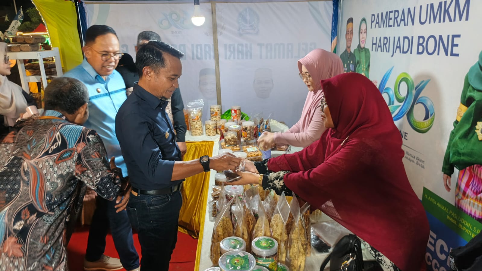 HumasBone – Bupati Bone H. Andi Asman Sulaiman, S.Sos., M.M., didampingi Ketua TP PKK Bone Hj. Maryam Andi Asman bersama Wakil Bupati Bone Dr. H. Andi Akmal Pasluddin, S.P., M.M., yang turut didampingi Wakil Ketua TP PKK Bone Hj. Maya Damayanti Andi Akmal, mengunjungi stand Pameran Pembangunan dan UMKM dalam rangka Hari Jadi Bone (HJB) ke-696.