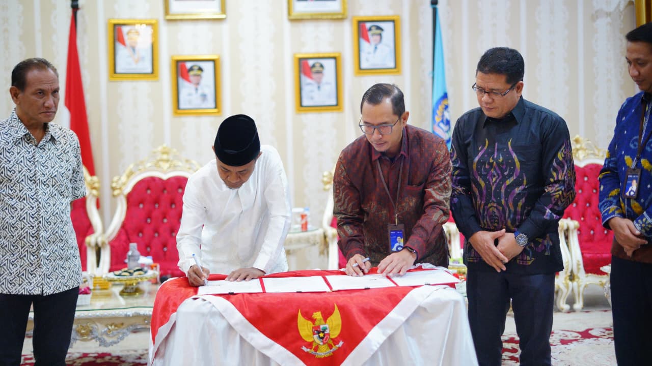 HumasBone – Bupati Bone, H. Andi Asman Sulaiman, S.Sos., M.M., melakukan penandatanganan kerja sama dengan Kepala Divisi Sekretaris Perusahaan (Corporate Secretary) PT Askrindo, Syafruddin, di Rumah Jabatan Bupati Bone, Sabtu (4/4/2026).