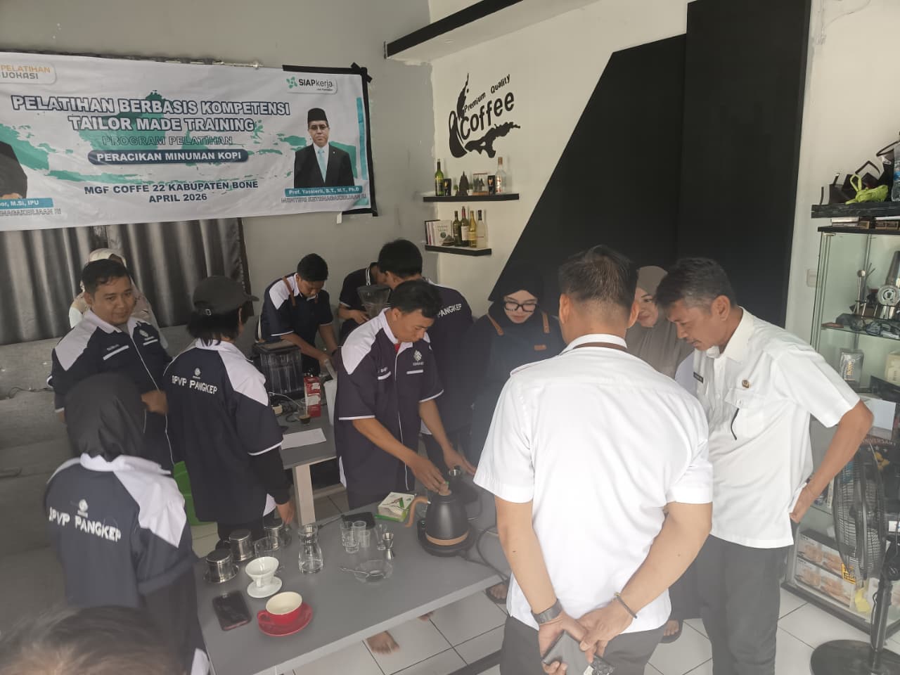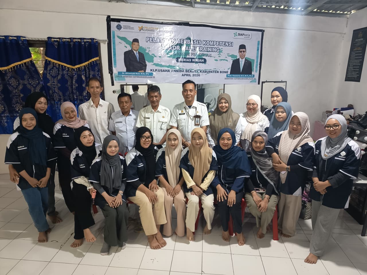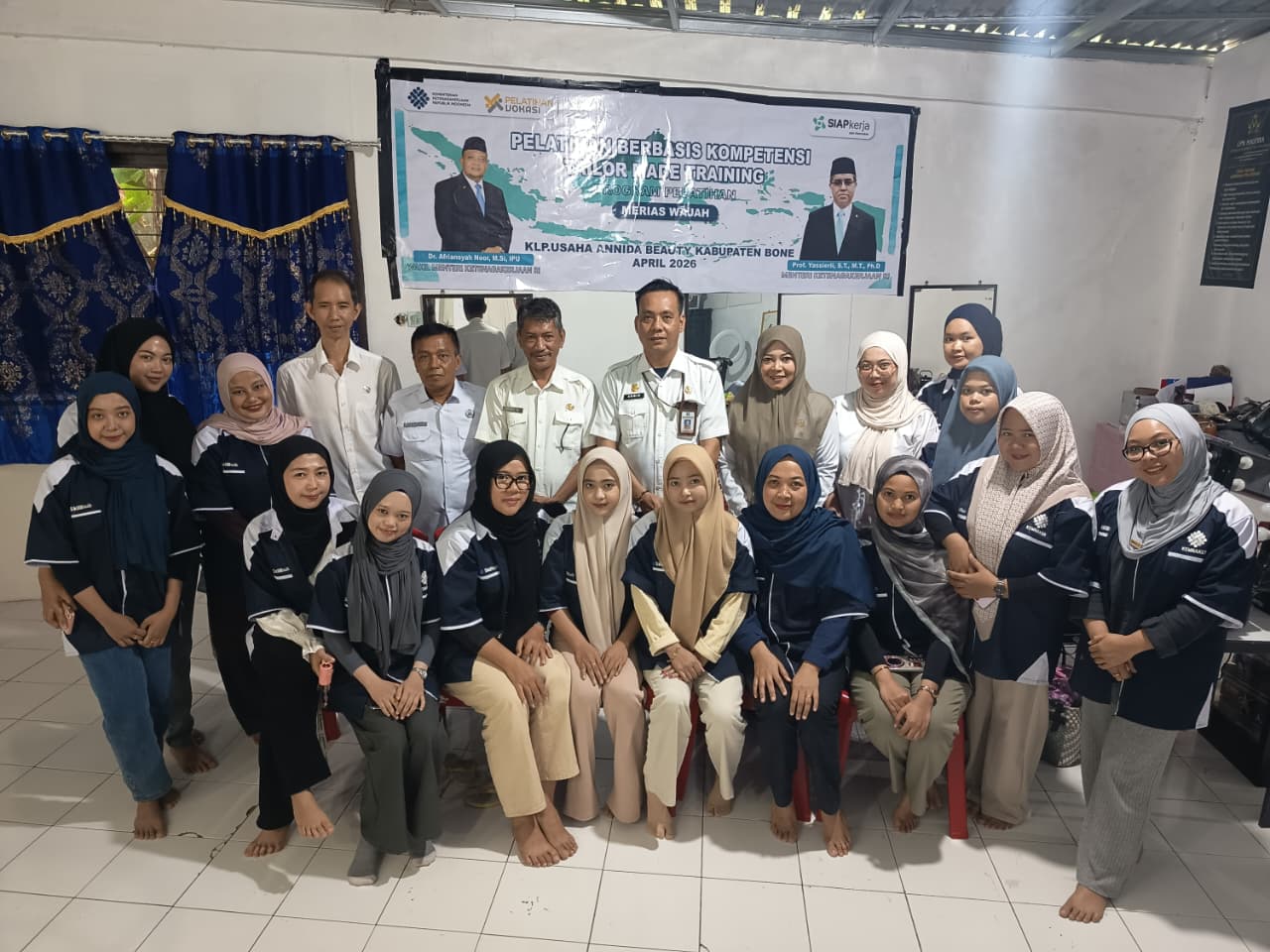 HumasBone – Pemerintah Kabupaten Bone melalui Dinas Tenaga Kerja melaksanakan kunjungan monitoring ke LPKS Magfira yang tengah menyelenggarakan pelatihan berbasis kompetensi melalui program tailor made training. Kunjungn ini dilaksanakan pada Selasa hingga Rabu, 7–8 April 2026. LPK Magfira sendiri melaksanakan program pelatihan dari Kementerian Ketenagakerjaan melalui Balai Pelatihan Vokasi dan Produktivitas (BPVP) Pangkep. Dalam program tersebut, terdapat dua paket pelatihan yang diberikan, yakni kejuruan barista (peracikan minuman kopi) serta kejuruan tata kecantikan (merias wajah).