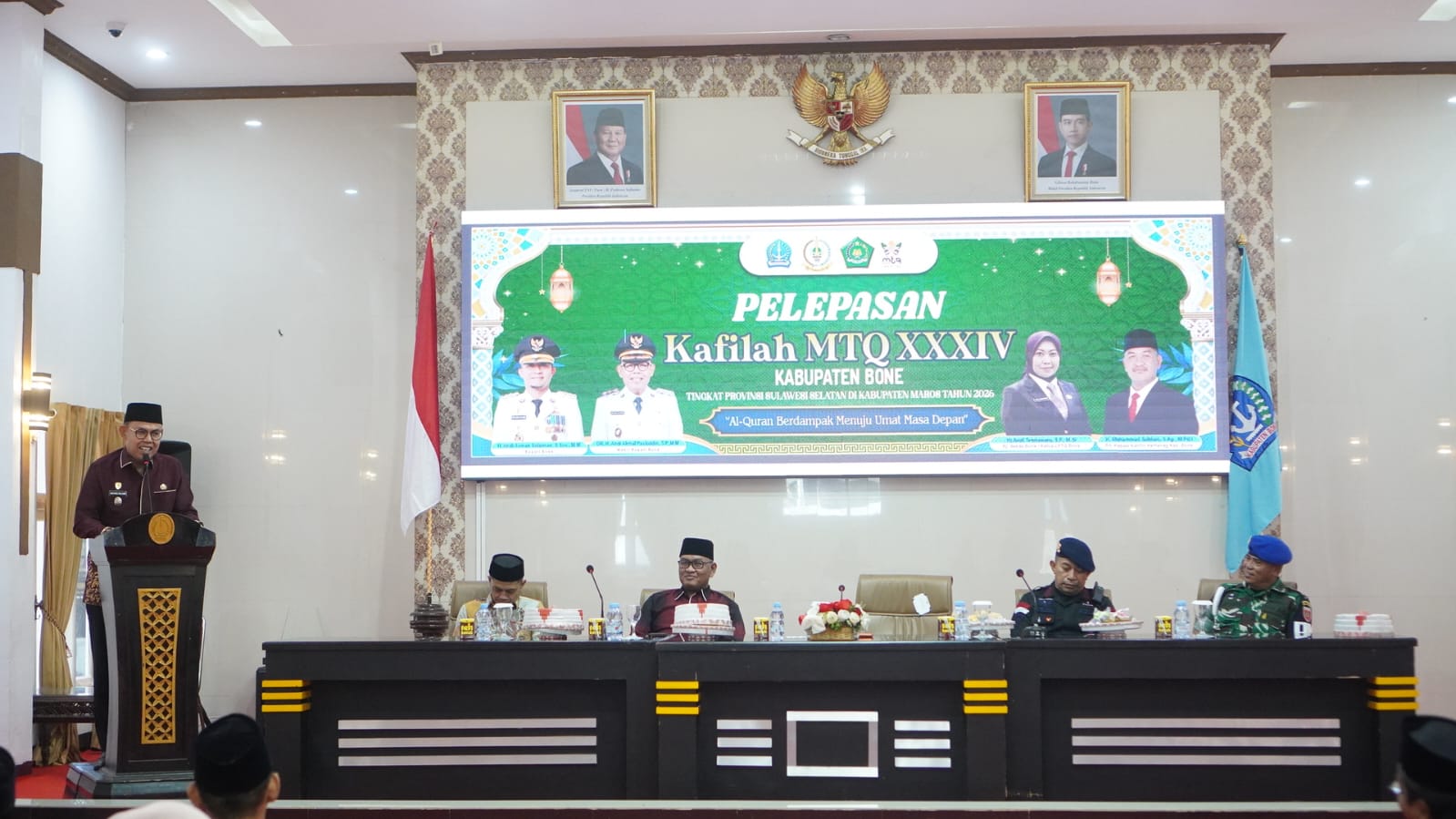 Kegiatan pelepasan tersebut berlangsung di Baruga La Teya Riduni, Sabtu (11 April 2026), dalam suasana khidmat dan penuh semangat. Momentum ini menjadi bagian penting dalam upaya Pemerintah Kabupaten Bone mendukung pembinaan generasi Qur’ani sekaligus meningkatkan prestasi di ajang keagamaan tingkat provinsi.