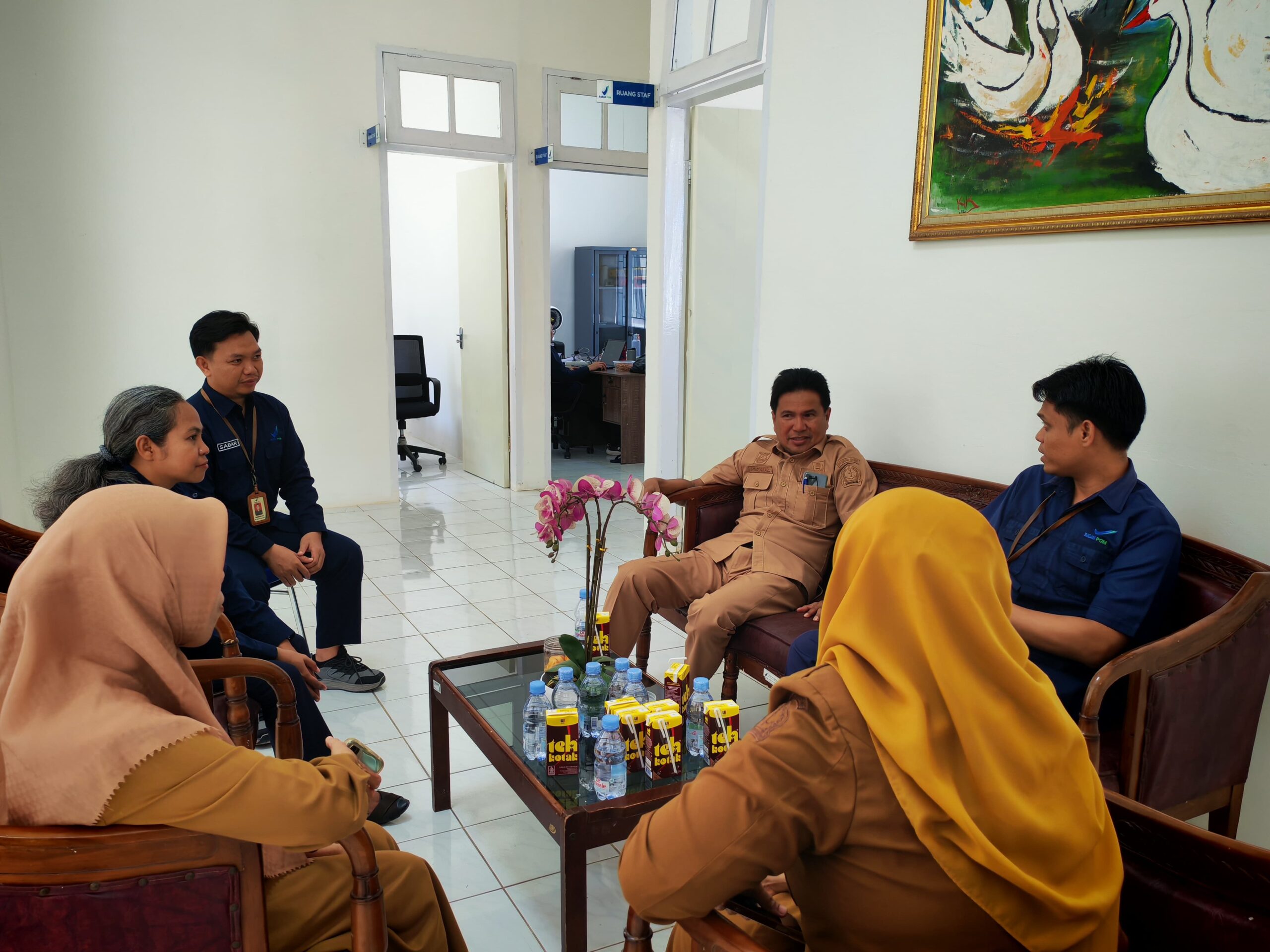 Kunjungan ini dipimpin langsung oleh Kepala Dinas Perindustrian Kabupaten Bone, H Andi Promal Pawi, ST, M.Si bersama Ketua Inovasi Pelayanan Publik Konsultasi dan Pelayanan Industri (KOPI) Bone, Musdalifah Maksud, S.Kom, M.Si Rombongan diterima oleh Plt Kepala Loka POM di Kabupaten Bone, Hadri Burhan, SH