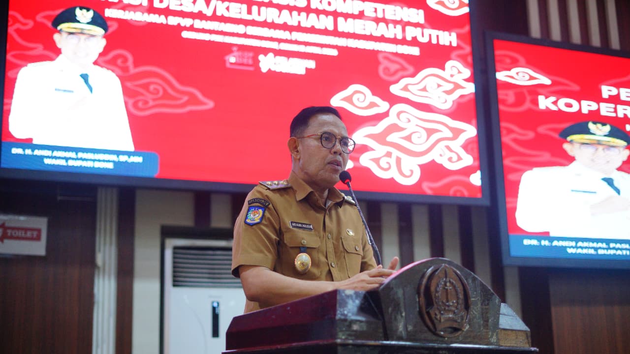 HumasBone – Wakil Bupati Bone, Dr. H. Andi Akmal Pasluddin, S.P., M.M., didampingi Sekretaris Dinas Koperasi A. Muh. Irfan, S.IP., M.Si., serta Kepala Bidang Pembinaan dan Kompetensi Kerja Dinas Tenaga Kerja Ir. A. Hendra Setiawan, S.Pt., M.Si., membuka secara resmi Pelatihan Berbasis Kompetensi (PBK) Koperasi Desa/Kelurahan Merah Putih Tahun 2026.