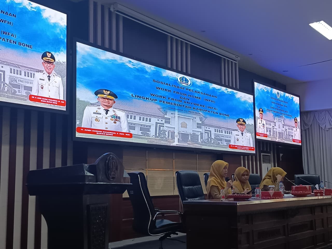 Turut hadir dalam kegiatan ini sejumlah Kepala OPD, Kepala Bagian, Camat, serta tamu undangan lainnya. Kegiatan kemudian dilanjutkan dengan sosialisasi penerapan sistem kerja fleksibel, yakni Work From Home (WFH) dan Work From Anywhere (WFA) sebagai bagian dari upaya peningkatan efektivitas dan efisiensi kinerja aparatur.