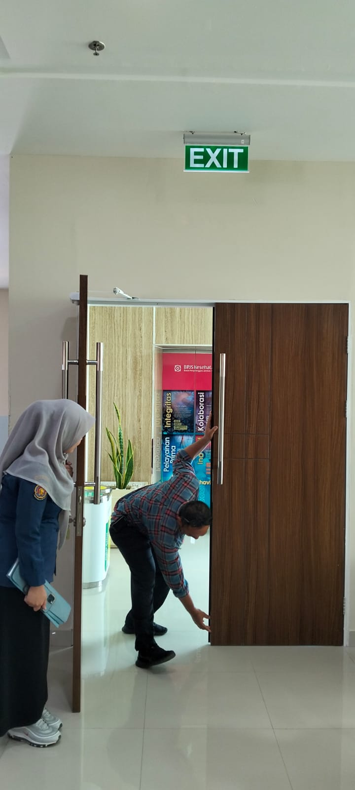 Kedua, proteksi pasif yang meliputi pencahayaan darurat, jalur evakuasi, tanda jalur keluar (Exit), titik kumpul, dan tangga darurat.