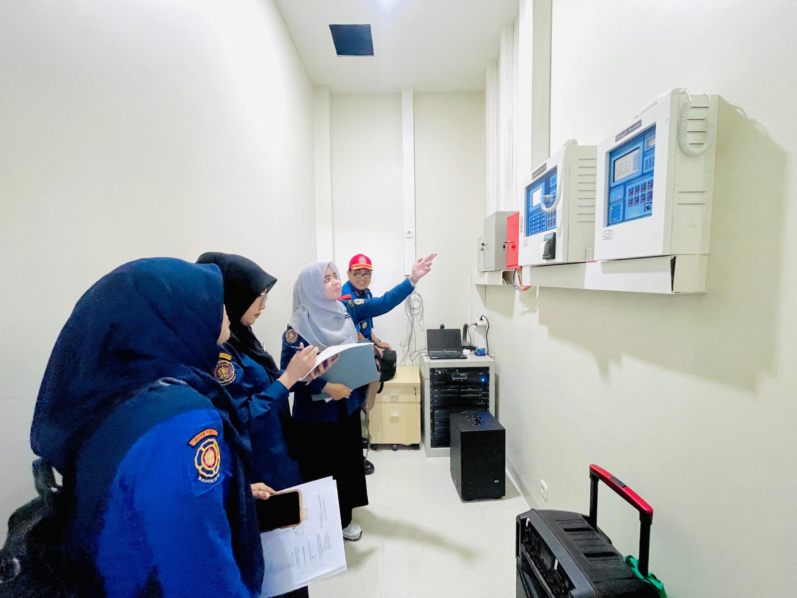 Ketua Tim, Ir. Akbar, menjelaskan bahwa pemeriksaan mencakup tiga aspek utama. Pertama, proteksi aktif meliputi Alat Pemadam Api Ringan (APAR), alat pemercik air/sprinkler, hidran halaman dan hidran gedung, sistem alarm kebakaran, serta detektor asap atau _smoke detector_.