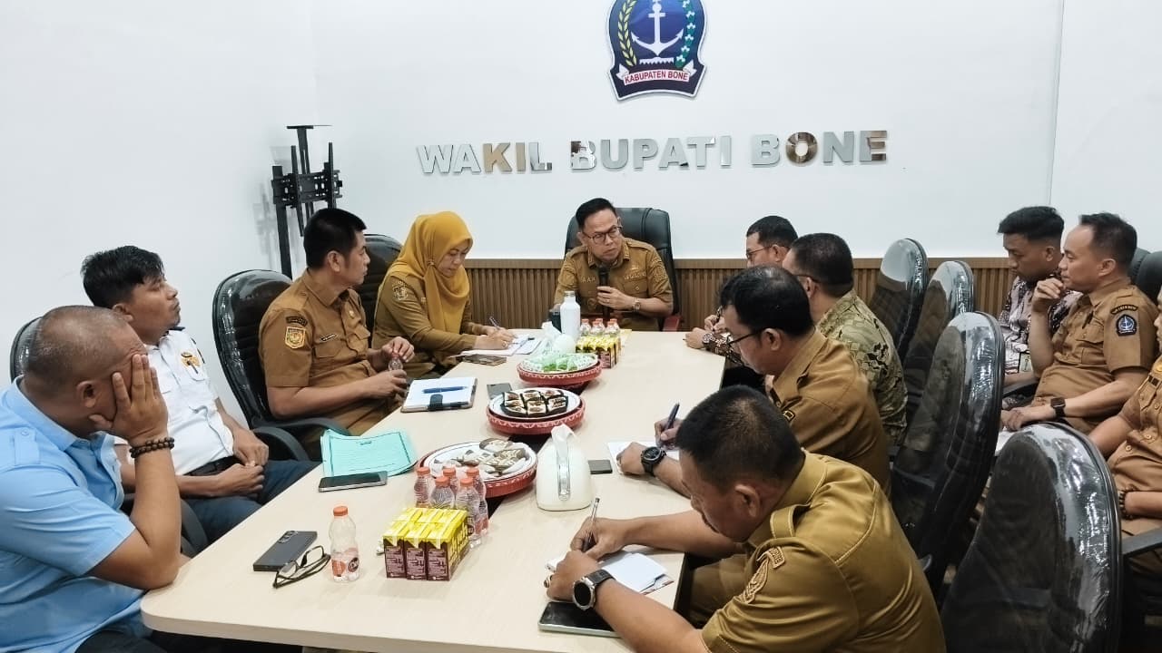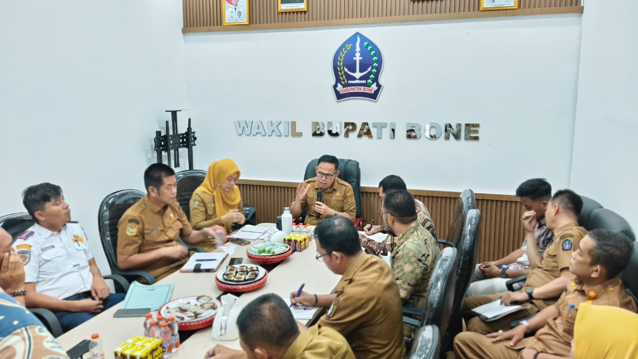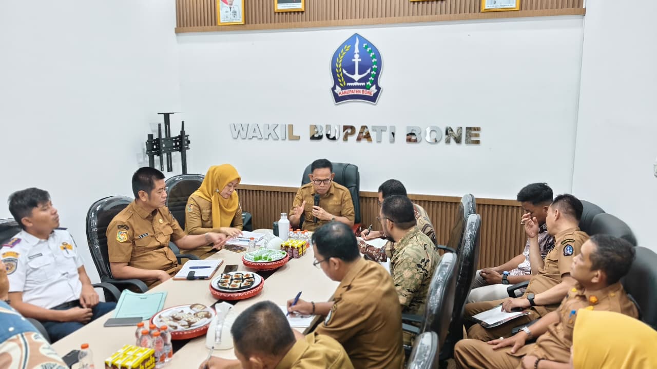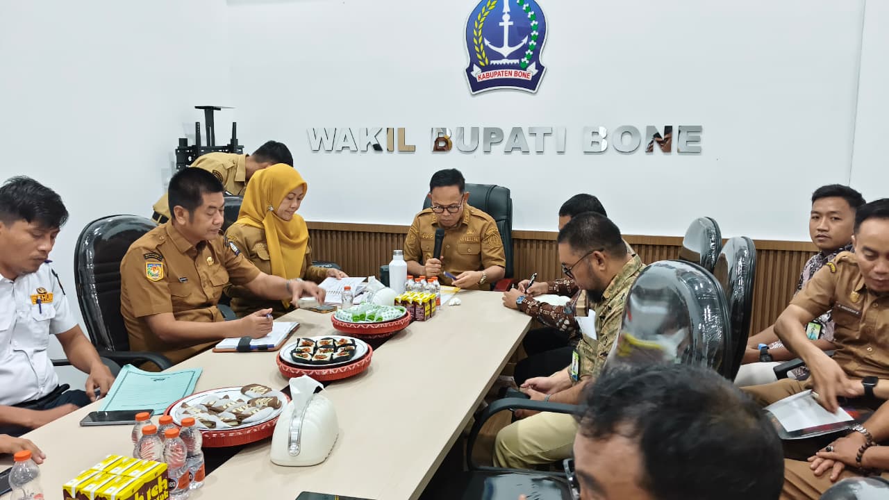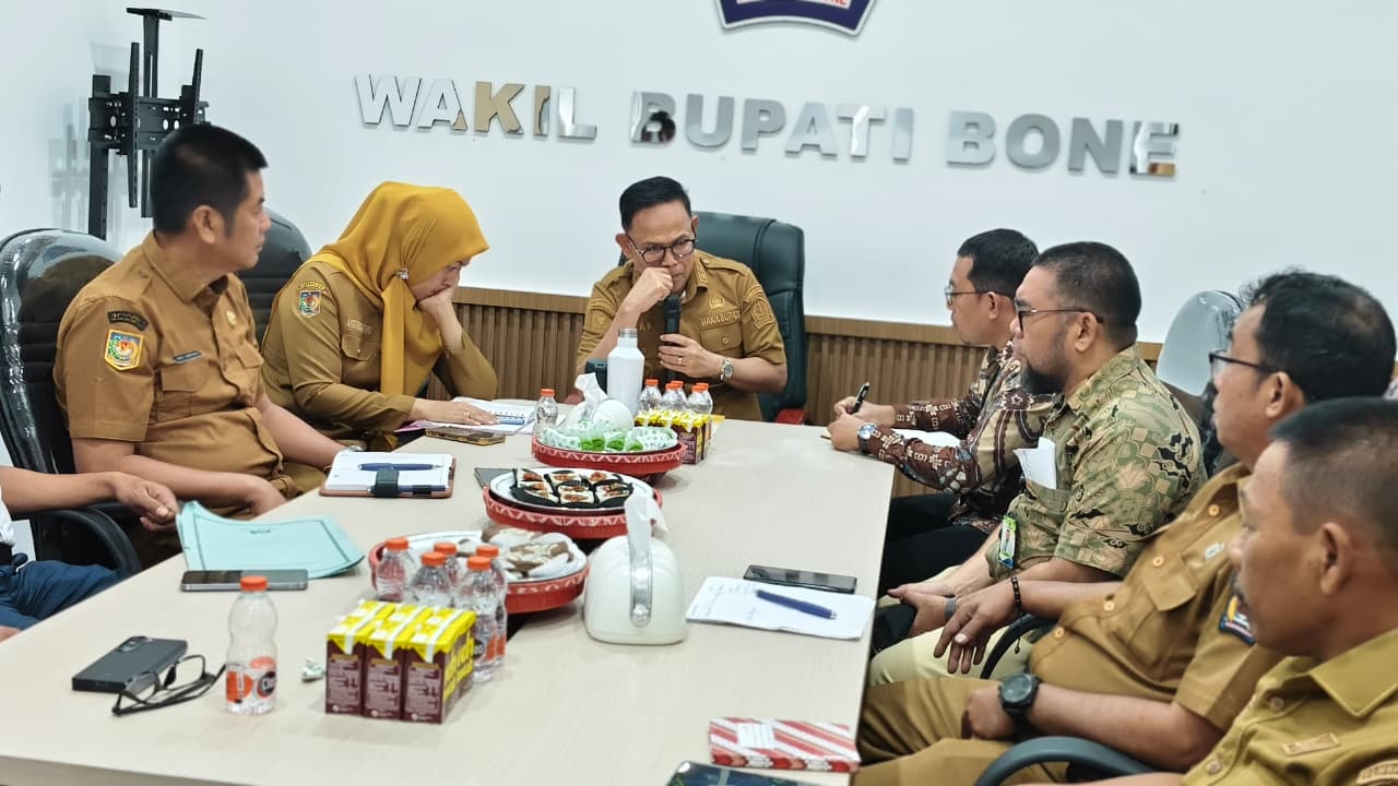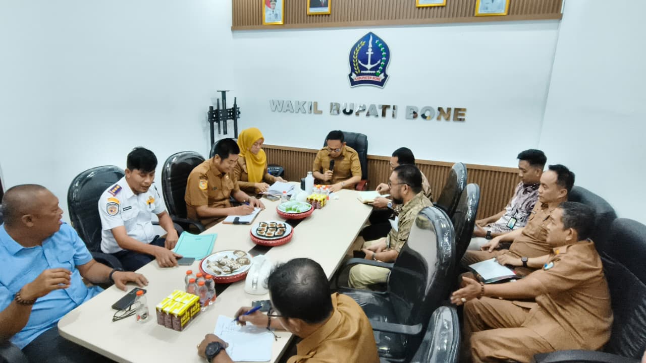 Kegiatan berlangsung di Ruang Kerja Wakil Bupati Bone, Selasa, 21 April 2026. Rapat membahas strategi percepatan digitalisasi transaksi pemerintah daerah guna meningkatkan transparansi, efisiensi, dan optimalisasi pendapatan daerah melalui pemanfaatan sistem pembayaran non-tunai berbasis QRIS.