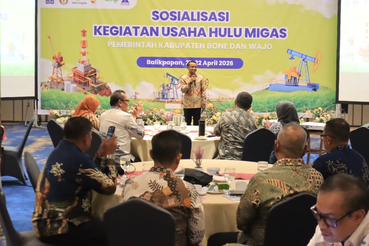 HumasBone – Pemerintah Kabupaten Bone terus memperkuat sinergi daerah dalam mendukung sektor strategis nasional. Bupati Bone, Andi Asman Sulaiman, bersama Sekretaris Daerah Kabupaten Wajo, Armayan, menghadiri kegiatan Sosialisasi Kegiatan Usaha Hulu Minyak dan Gas Bumi (Migas) yang diselenggarakan oleh Pemerintah Kabupaten Bone dan Pemerintah Kabupaten Wajo.