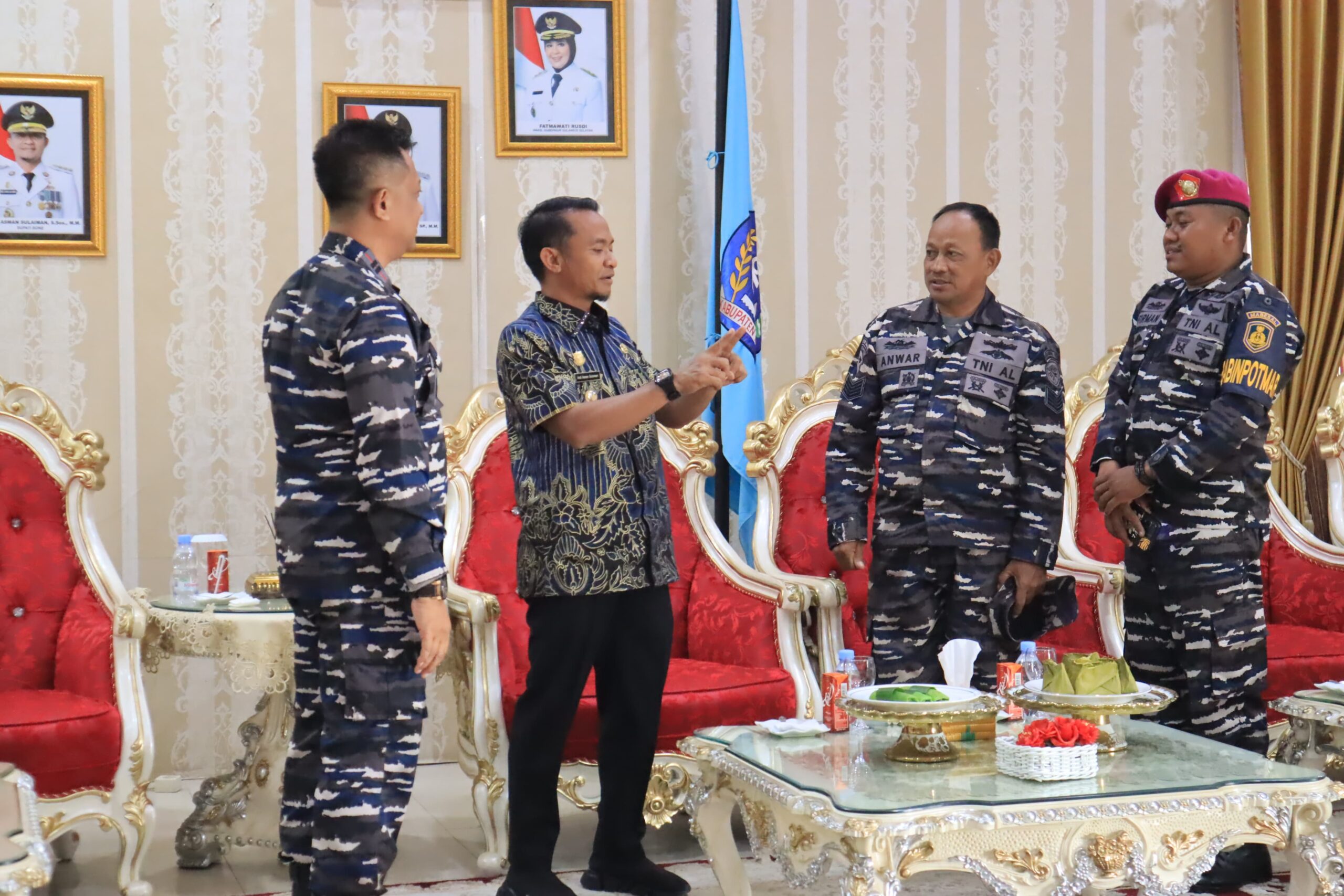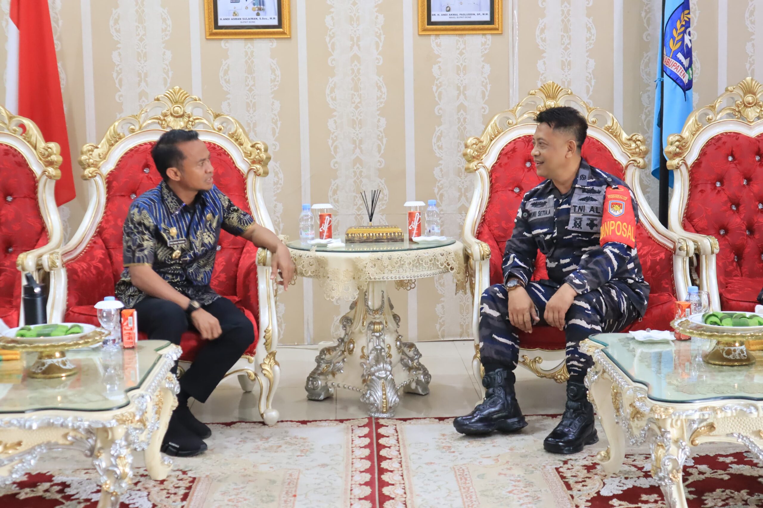 Dalam suasana yang hangat dan penuh keakraban, Bupati Bone mengapresiasi kehadiran jajaran TNI AL. Pertemuan ini membahas penguatan koordinasi terkait pengawasan wilayah perairan yang menghubungkan Bone dan Sinjai.