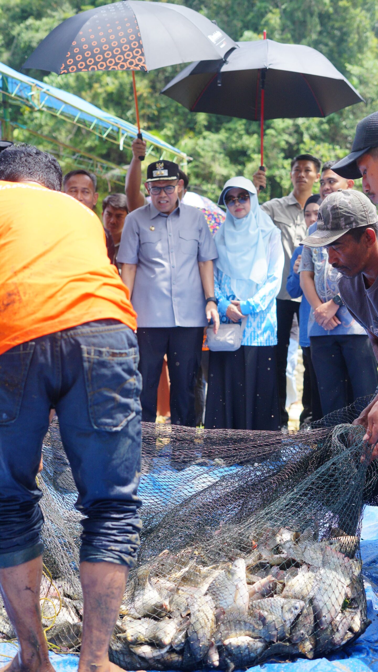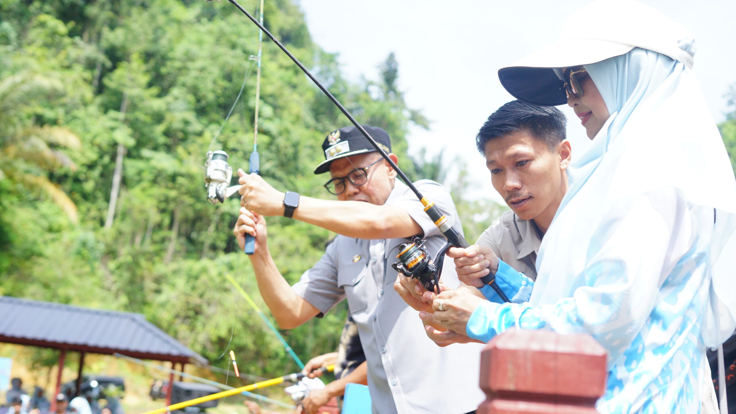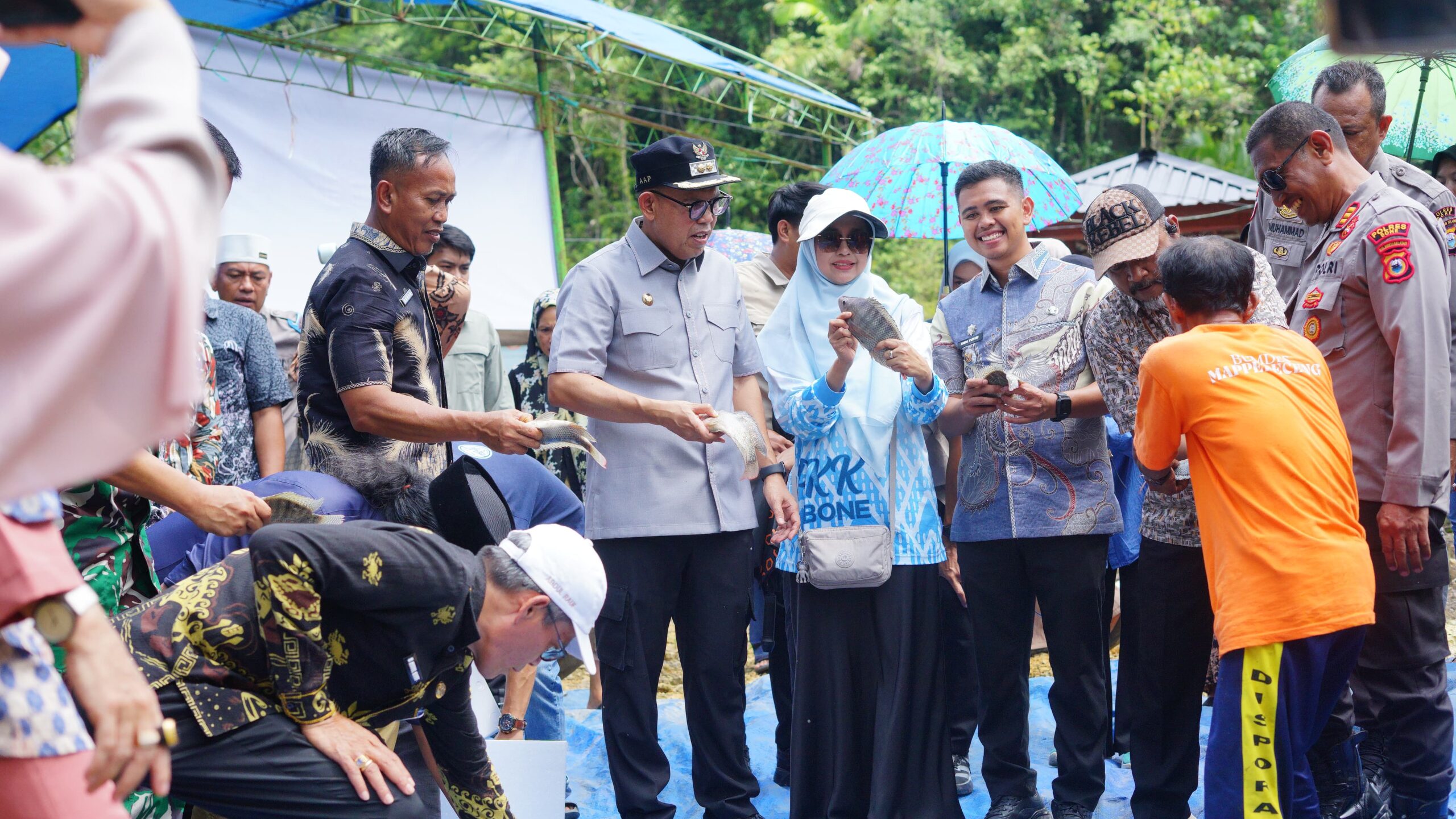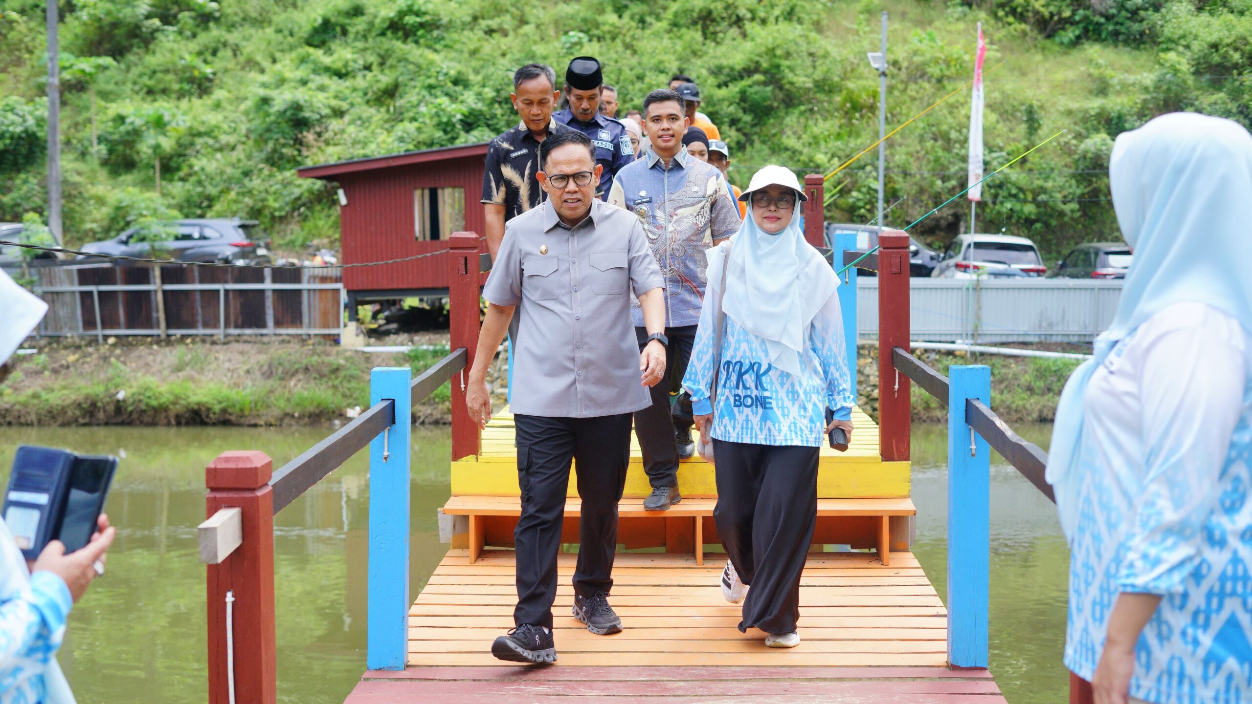 HumasBone – Wakil Bupati Bone, Dr. H. Andi Akmal Pasluddin, S.P., M.M., didampingi Ketua Tim Penggerak PKK Bidang Ketahanan Pangan, Hj. Maya Damayanti Andi Akmal, S.P., melakukan Panen Perdana Ikan Nila yang dirangkaikan dengan Launching Wisata Memancing di Objek Wisata Tiro Bulu, Desa Cempaniga, Kecamatan Barebbo, Kamis 23 April 2026.