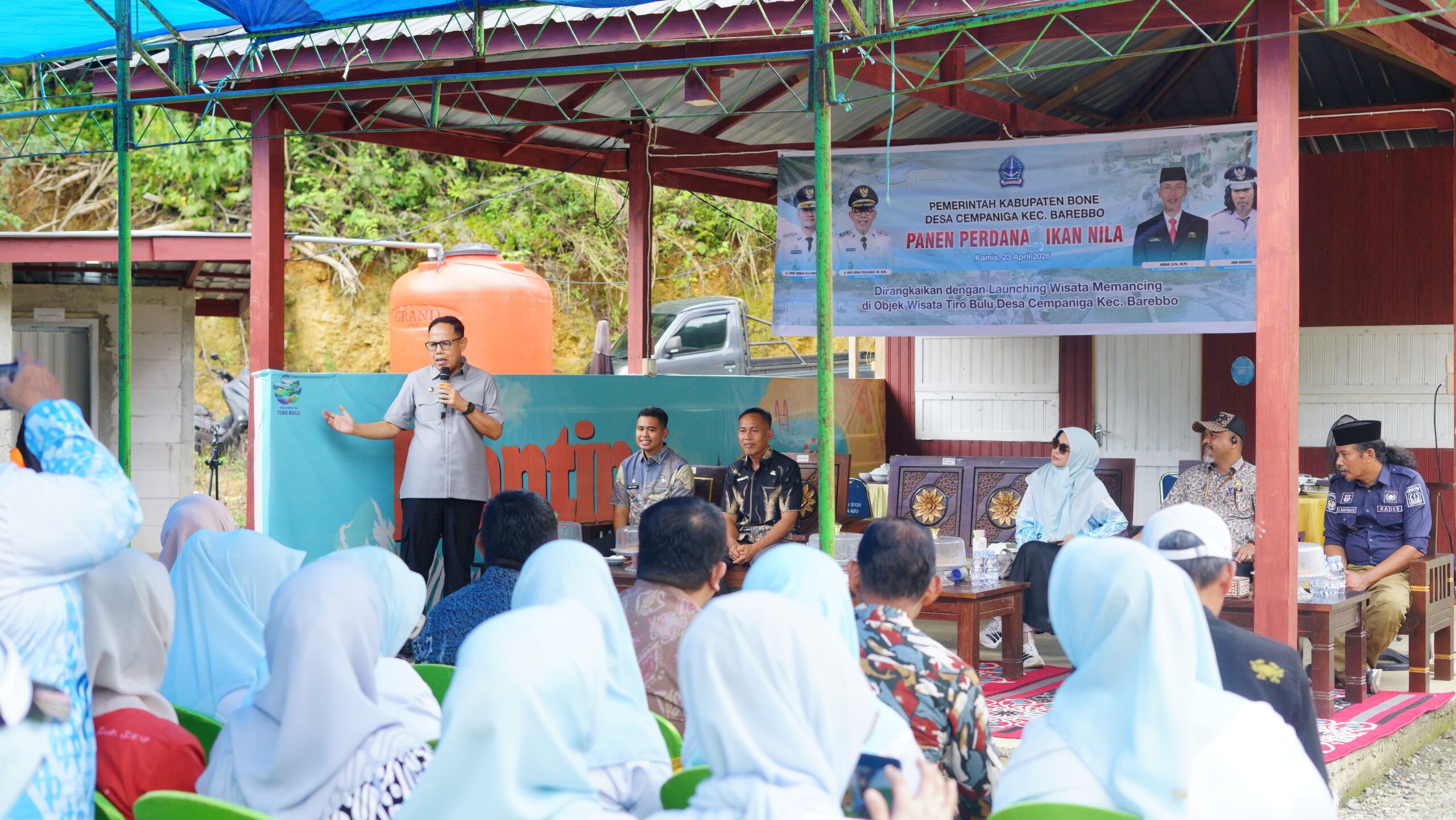Dalam sambutannya, Wabup Andi Akmal menyampaikan apresiasi kepada Pemerintah Desa Cempaniga dan kelompok budidaya yang telah berhasil mengelola program perikanan nila secara berkelanjutan.