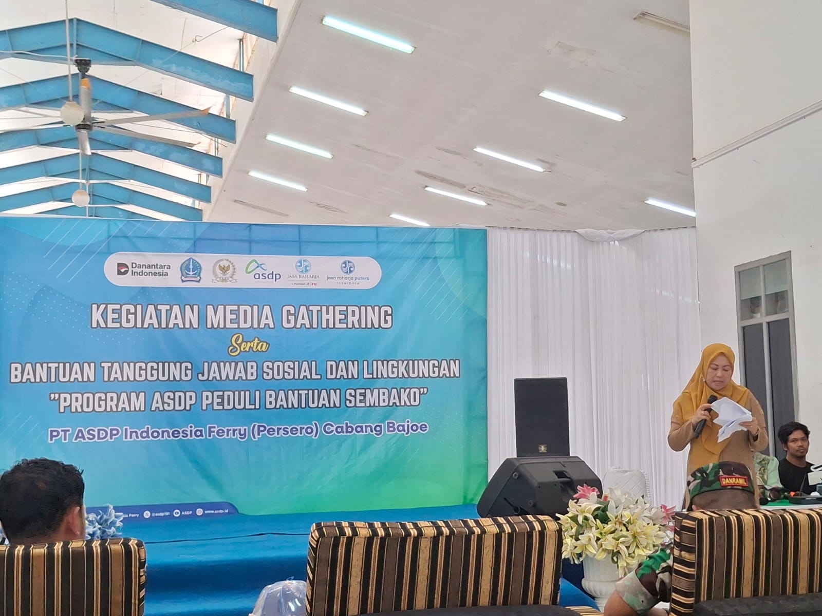 HumasBone – Penjabat Sekretaris Daerah (Pj Sekda) Bone, Hj. Andi Tenriawaru, S.P., M.Si., menghadiri kegiatan penyaluran 500 paket sembako oleh PT ASDP Indonesia Ferry (Persero) Cabang Bajoe kepada masyarakat terdampak penutupan Pelabuhan Bajoe. Kegiatan ini dirangkaikan dengan media gathering dan program Tanggung Jawab Sosial dan Lingkungan (TJSL) bertajuk ASDP Peduli yang berlangsung di Aula ASDP Bajoe, Kecamatan Tanete Riattang Timur, Selasa (28/4/2026).